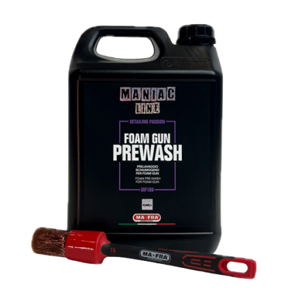 Foam Gun Prewash – tai galingas, bet saugus putų pagrindo išankstinio plovimo produktas, skirtas pašalinti iki 90 % purvo nuo automobilio paviršiaus prieš rankinį plovimą. Efektyviai šalina smogą, kelių nešvarumus, vabzdžių likučius, paukščių ar augalų organines medžiagas. Dėl savo neutralios formulės yra visiškai saugus anksčiau užneštiems apsauginiams sluoksniams, įskaitant keramines ar nanodangas. Tinka naudoti tiek su putų pistoletu (Foam Gun), tiek su žemo slėgio rankiniu purkštuvu. Malonaus kvapo, ekonomiškas ir puikiai tinka dažnam naudojimui, siekiant sumažinti riziką atsirasti įbrėžimams ar „suktukams“.